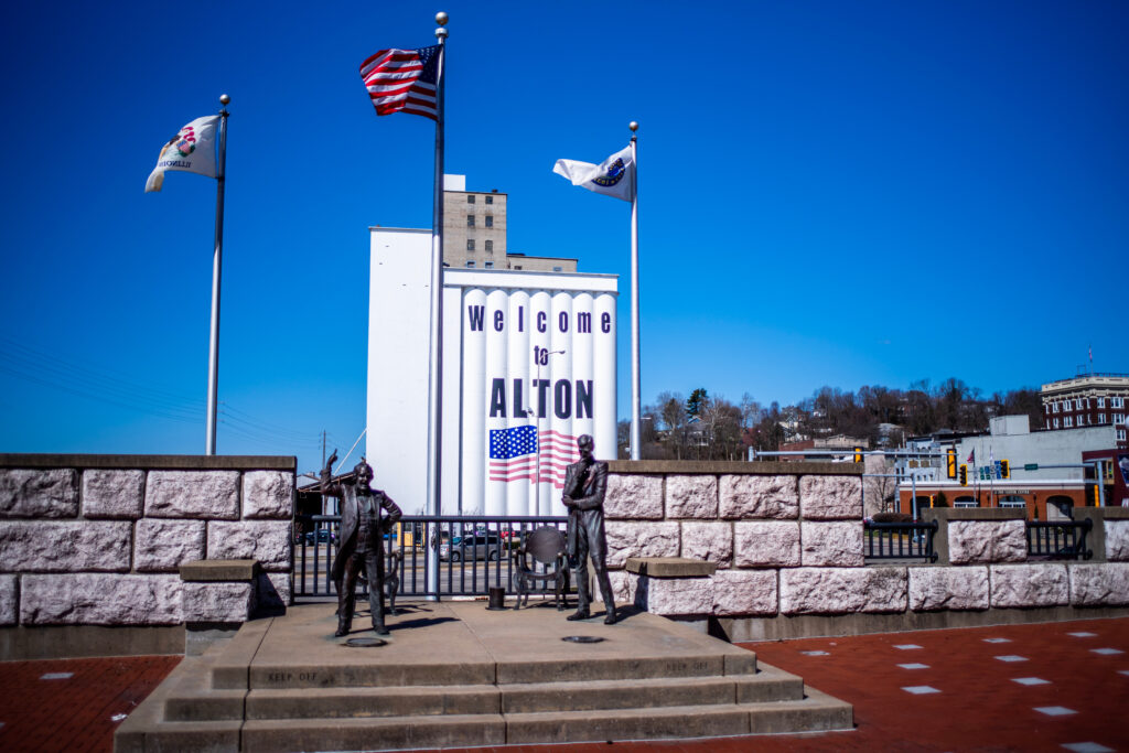 Alton sits dramatically along a sweeping bend of the Mississippi River, its limestone bluffs rising like pale guardians over the water. This is a river town with a storied past — a place touched by giants of history, myth, and America’s unsettled frontier. Walk its streets and you sense the echo of steamboats, Lincoln-era debates, and the wild lore of river life.
